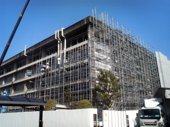 工事用の足場が,E館南側にも組まれ始めました.