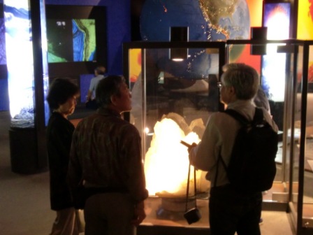 (中) 博物館岩石コーナーで一般の方に質問されレクチャーしているEnami先生(さすが!)