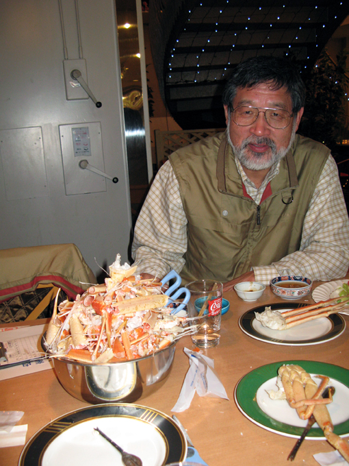 板谷さんに,蟹と格闘しなくてもよい,正しい(?)食べ方を教えてもらいました(彼は,小さい頃,香箱蟹をおやつに育ったそうです).今度,皆さんに伝授しましょう.