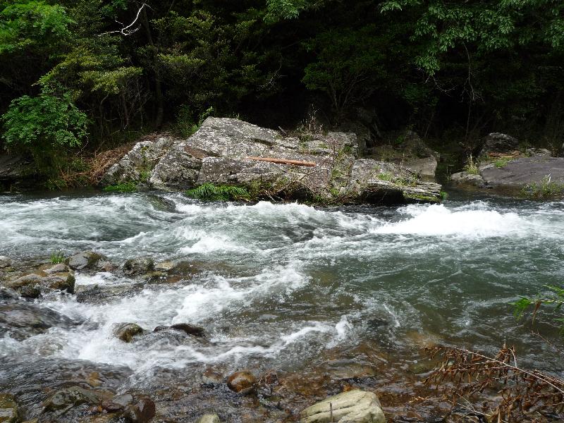 対岸の露頭には紅柱石がたくさんあるそうです。