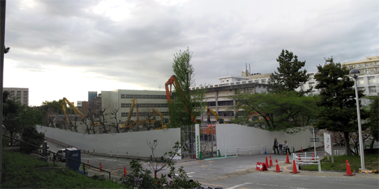 理学部E館の西側にあった工学部4号館が,いつの間にか取り壊されていました.4月8日にはまだ