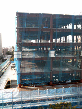 左:E館の西には巨大な骨組みが建ち,一時の眺望が.....