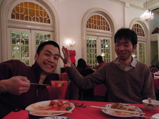 サイモン先生が一足先に日本へ帰ってしまったので,今宵はD・3人衆で中華料理↓