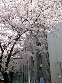 右側は,理学部E館北側,旧超高圧棟との間にある桜です.最近は,ここで花見をすることが多くなりました.今年も,寒さに震えながらのお花見を3月中に行いました.まさか,4月の第2週に満開を迎えるとは.だれか,今年の花見の様子をアップしませんか.(え)