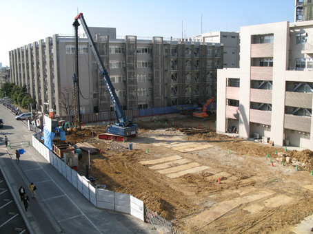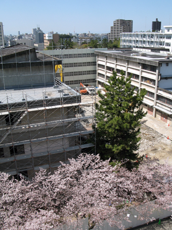 理学部E館の西側にあった工学部4号館が,いつの間にか取り壊されていました.4月8日にはまだこんな状態だったのですが.(え)