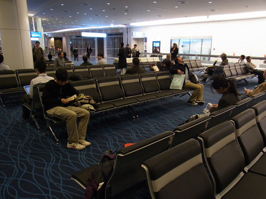 羽田空港での搭乗待ちの様子↓(いつもの静かな風景ですね・・・)