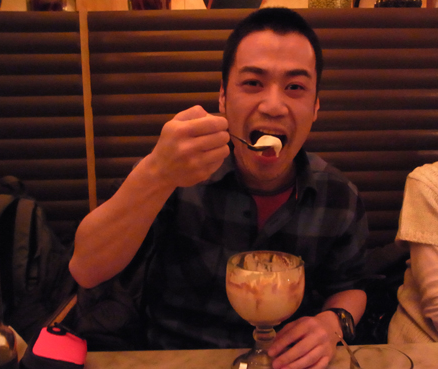(写真は夕食のデザート,ニンニクアイスクリーム・・・美味い?)
